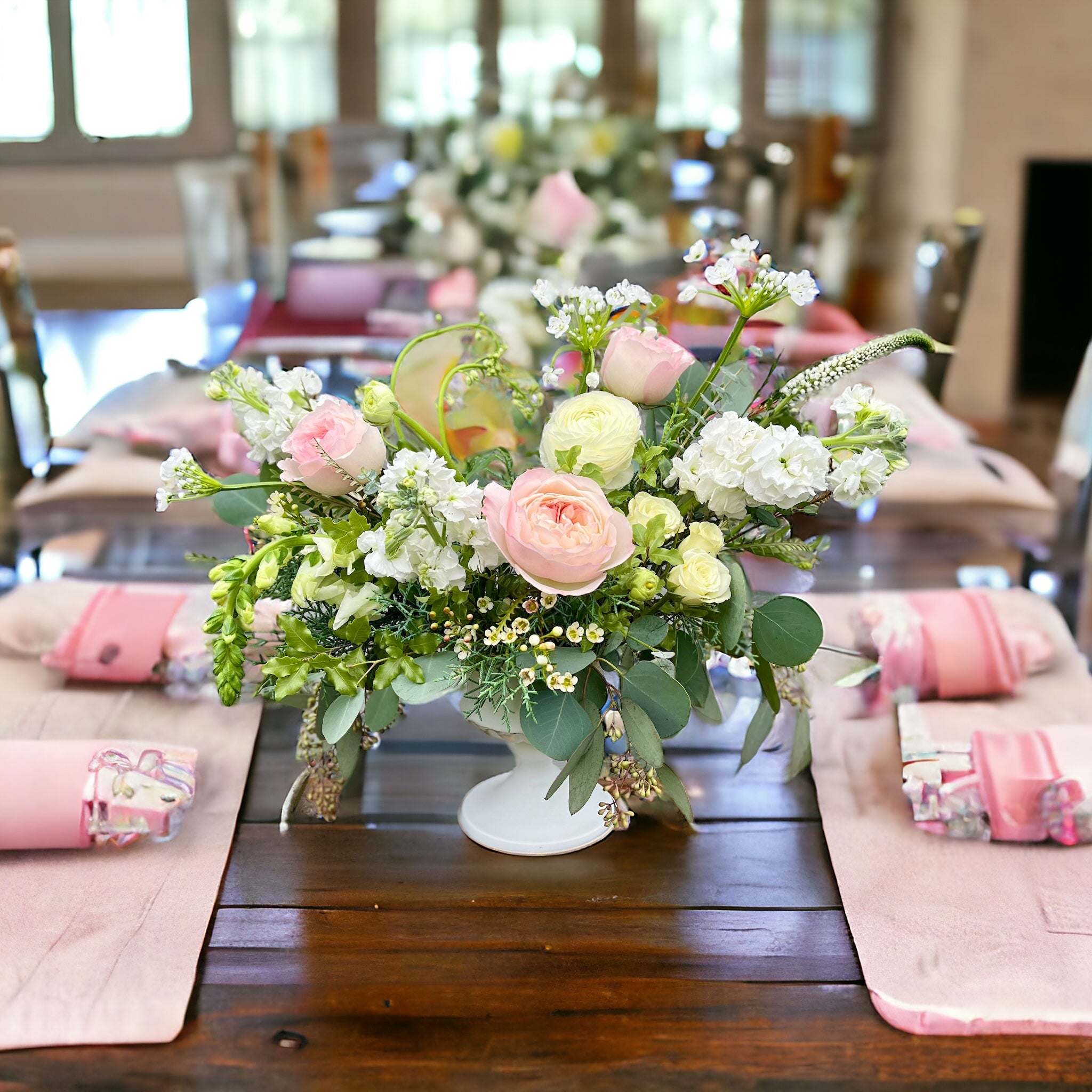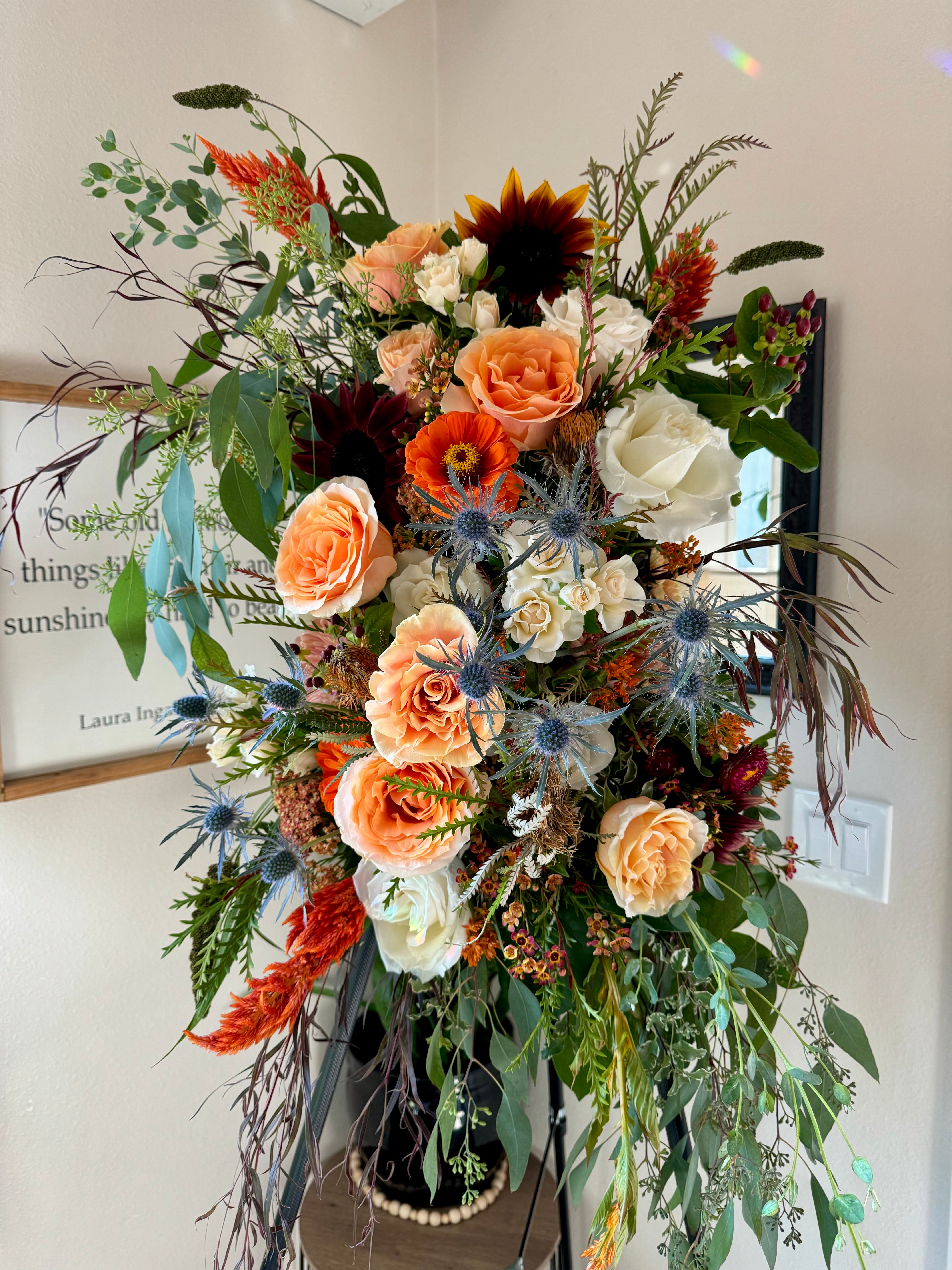 - Fresh, seasonal blooms and greenery